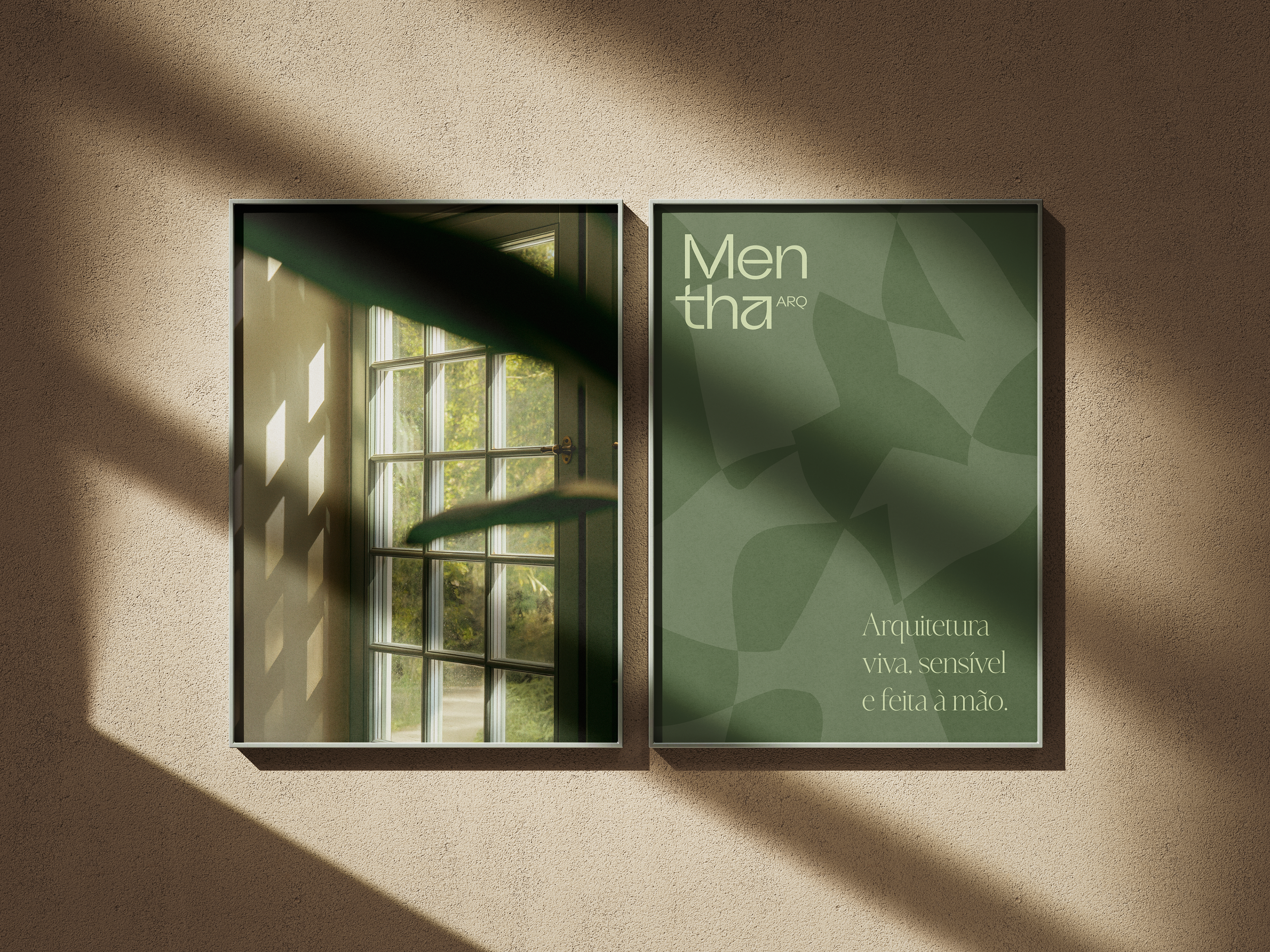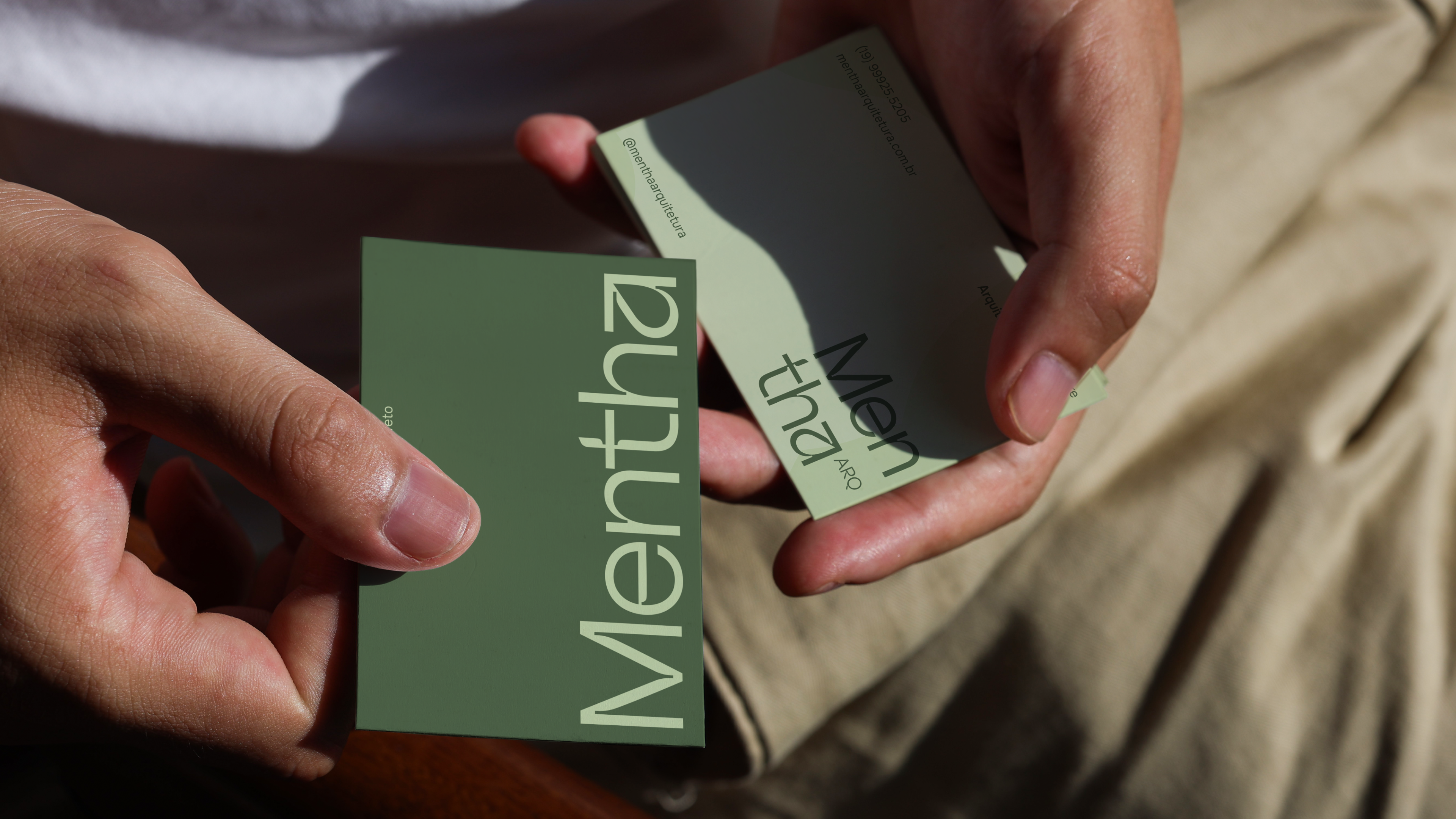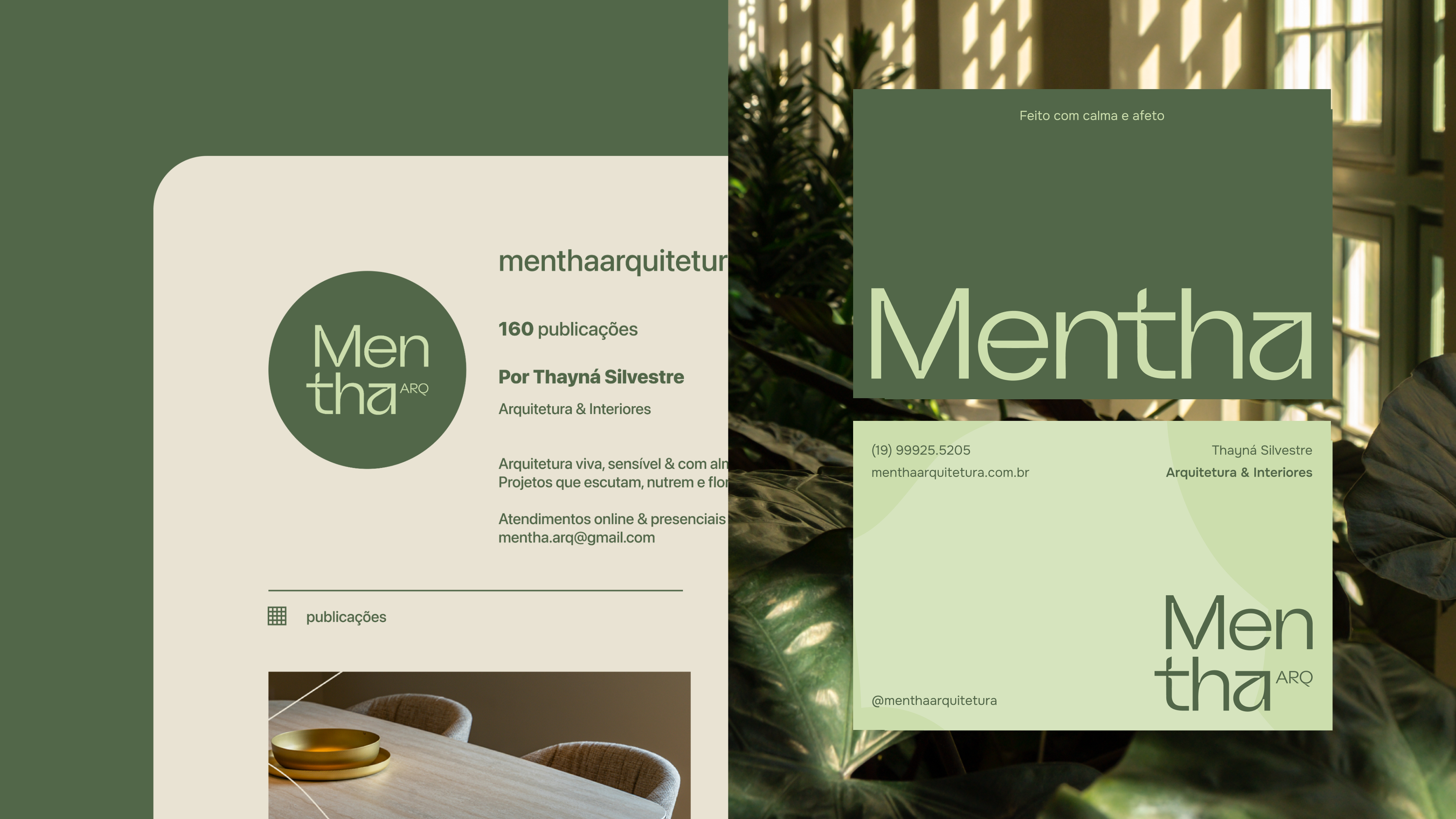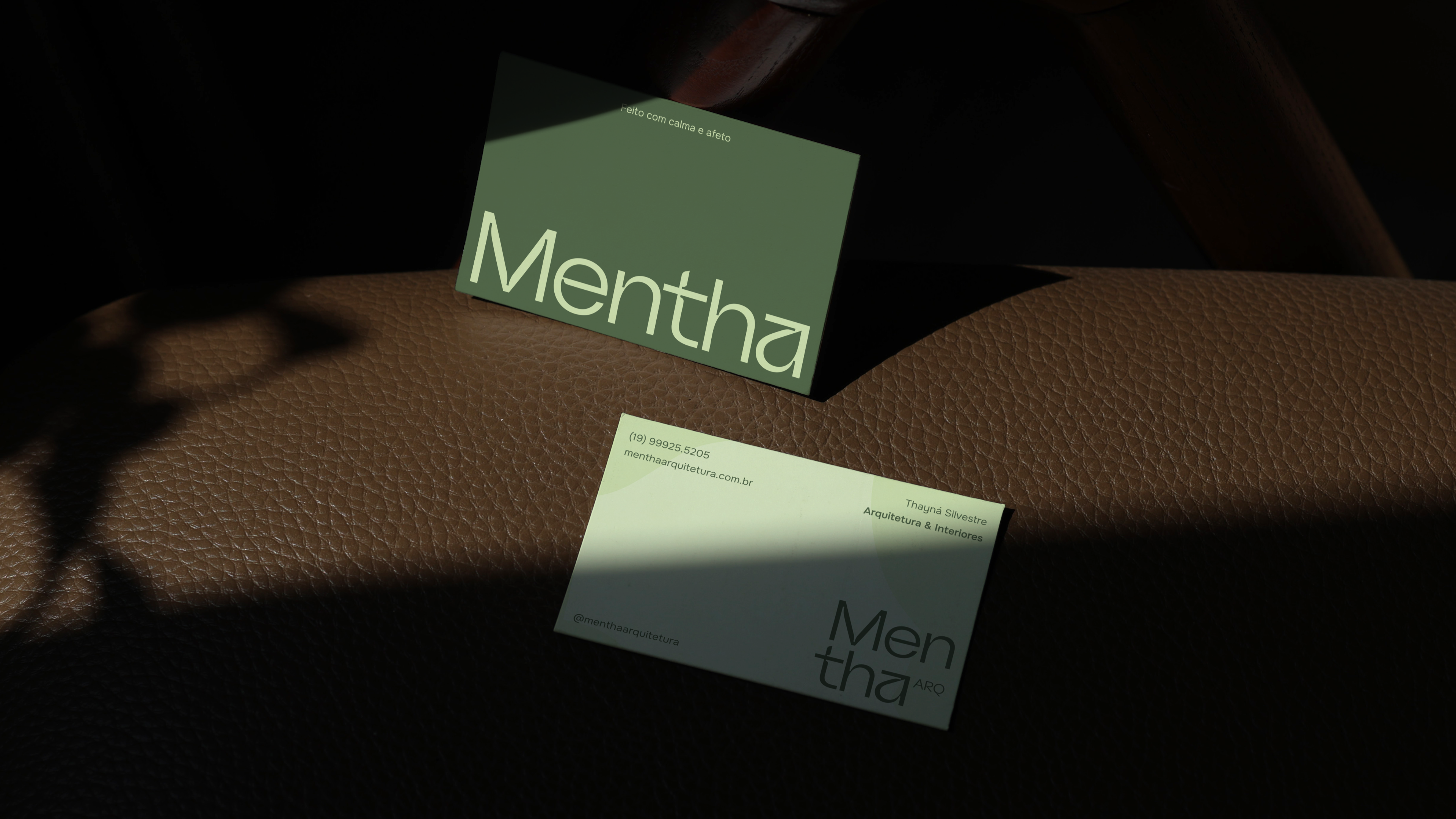 A Marca que Acolhe: O resultado é uma marca que respira com leveza, que se alinha à natureza sem precisar gritar e que acolhe como a casa da avó. Cada traço comunica que nada é puramente geométrico ou rígido; tudo respira. A Mentha nasceu como uma semente de conceito e, através desta identidade, floresce como a marca que comunica ao mundo que morar é, de fato, cura, pausa e presença.